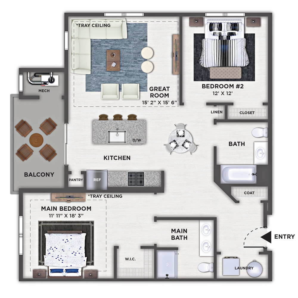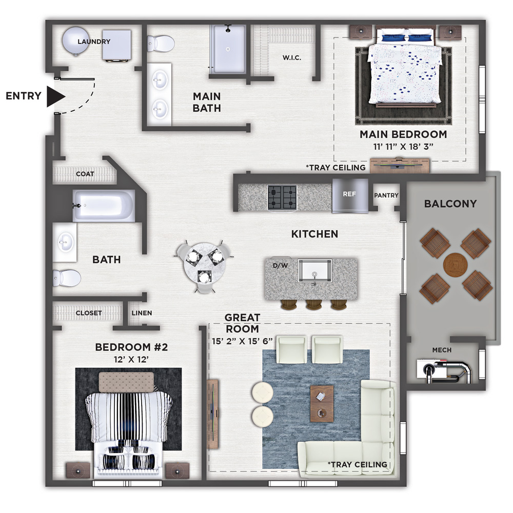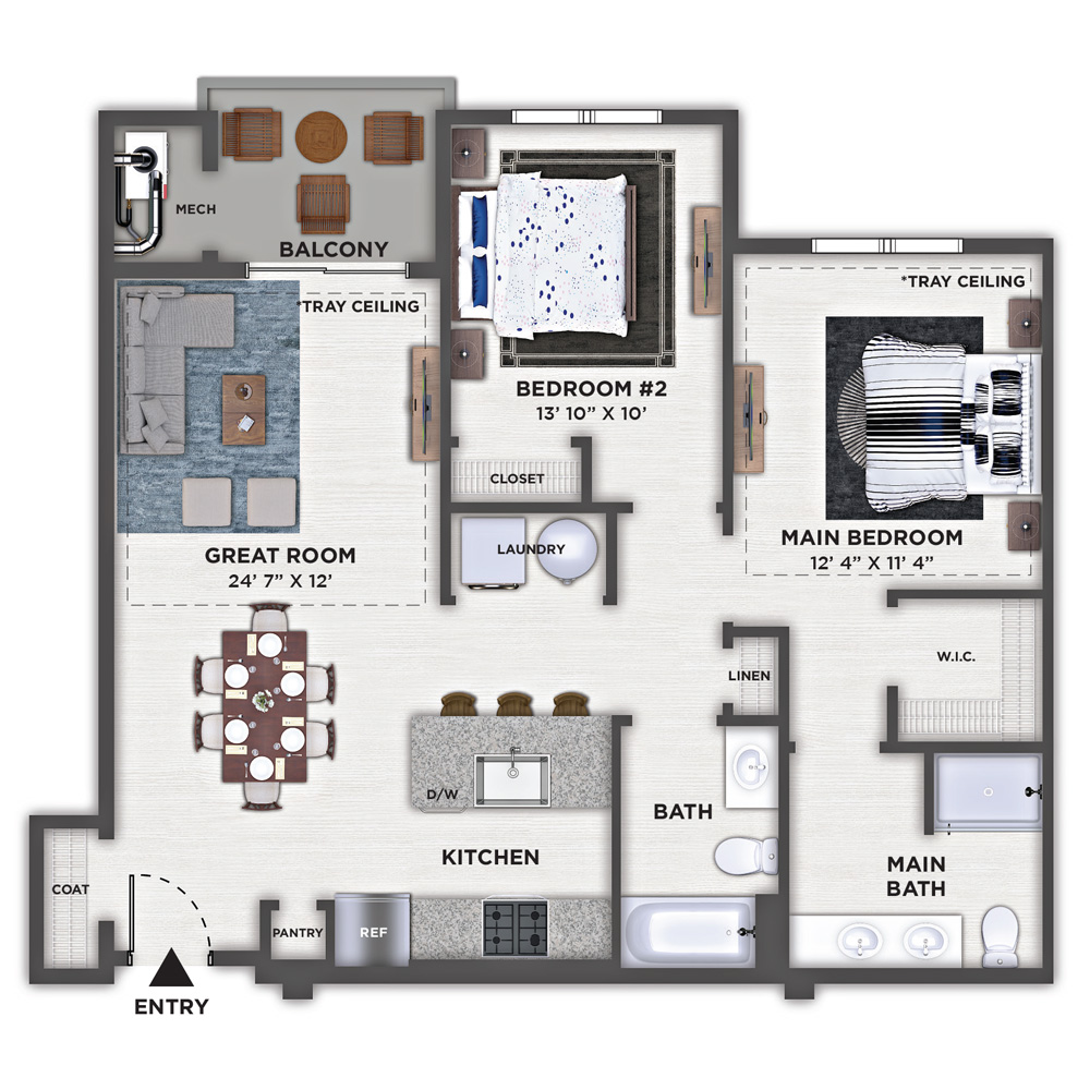 2 Bedroom, 2 Bath • 931 Sq. Ft.