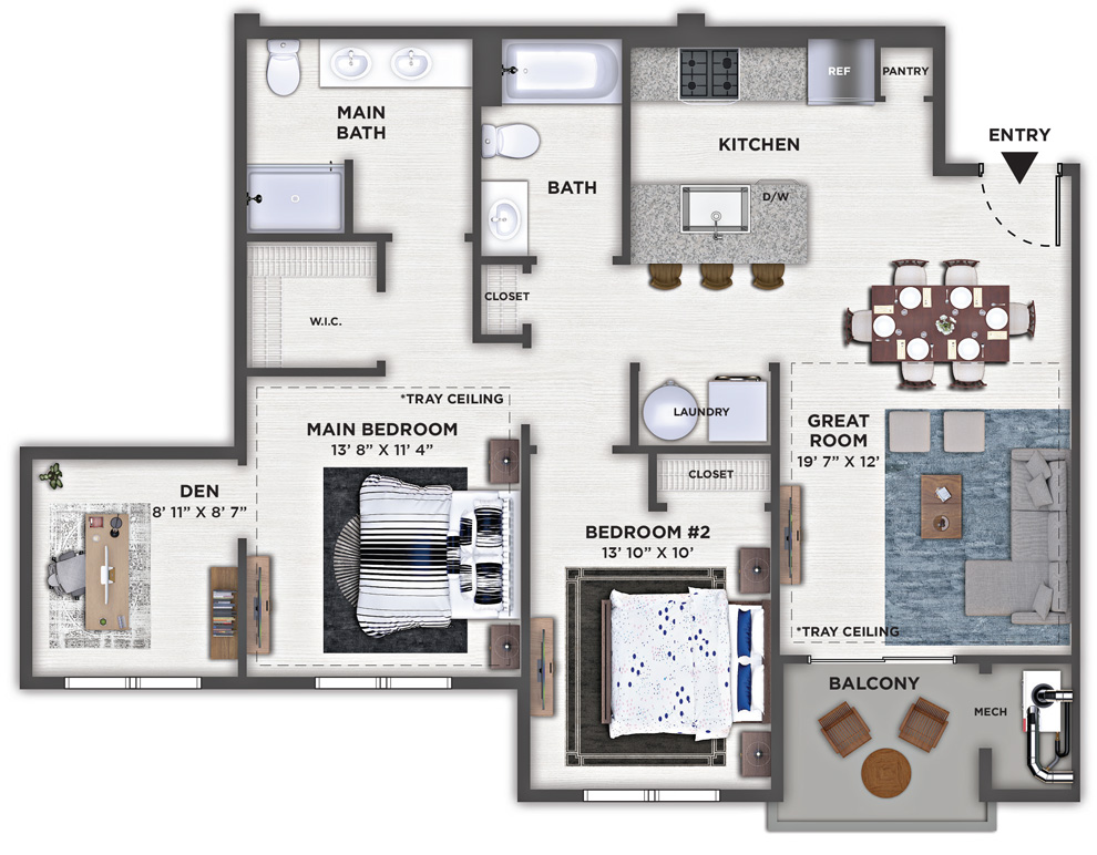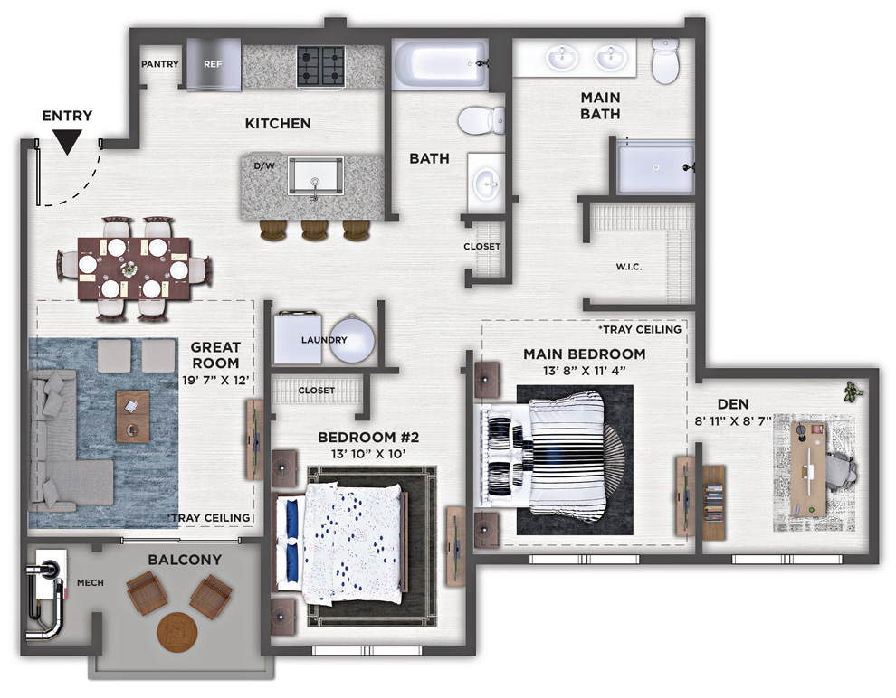 2 Bedroom, 2 Bath, Den • 968 Sq. Ft.